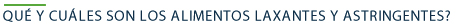 Los alimentos laxantes se refieren a aquellos que promueven las evacuaciones blandas y frecuentes, entre los más comunes tenemos a la naranja, ciruela pasa, mango, papaya, uva pasa, tamarindo, lechuga, espinaca, calabacitas, elote, frijol, lenteja, avena, cereales que contienen avena o fibra, así como el ingerir una buena cantidad de agua. Los alimentos astringentes por el contrario son aquellos que promueven evacuaciones más duras y menos frecuentes, como por ejemplo, el plátano, tuna, guayaba, tejocote, manzana sin cáscara, papa, zanahoria, arroz, pastas y el tomar más de dos vasos de leche al día. |