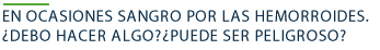 El sangrado de una hemorroide no tiene una gran importancia en cuanto a sus riesgo. Pero la pregunta es si realmente el sangrado es de este origen. La emisión de sangre por el ano puede ser debido a unas hemorroides –conocidas ó no- pero lo importante es descartar otras posibles causas, situadas en el recto o en el colon, y que sí pueden resultar de mayor trascendencia médica. NUNCA confíe en que son las hemorroides la causa del sangrado. Acuda a su médico especialista en Aparato Digestivo para que le haga un diagnóstico correcto. |